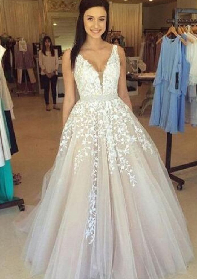 WD1024,Champagne applique prom dresses a-line beaded evening formal gown