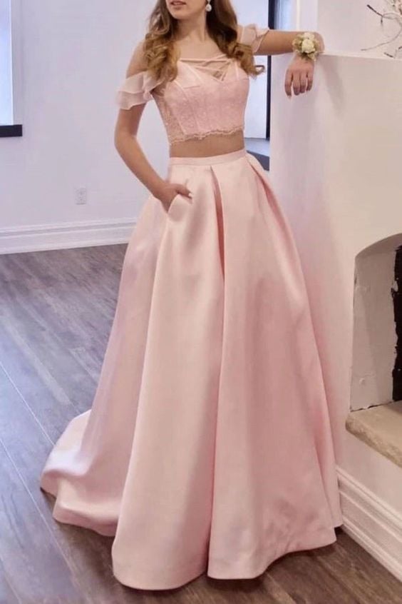 WD1101,Charming Pink Evening Prom Dress Two Piece Prom Dresses Long Prom Gowns With Pockets