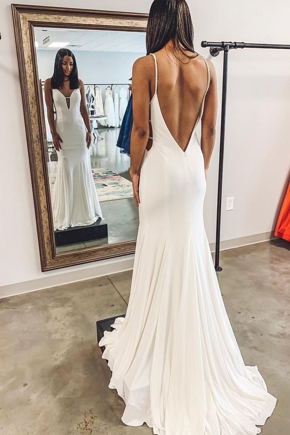 WD1106,Sexy White Long Prom Dresses Open Back Evening Party Dress